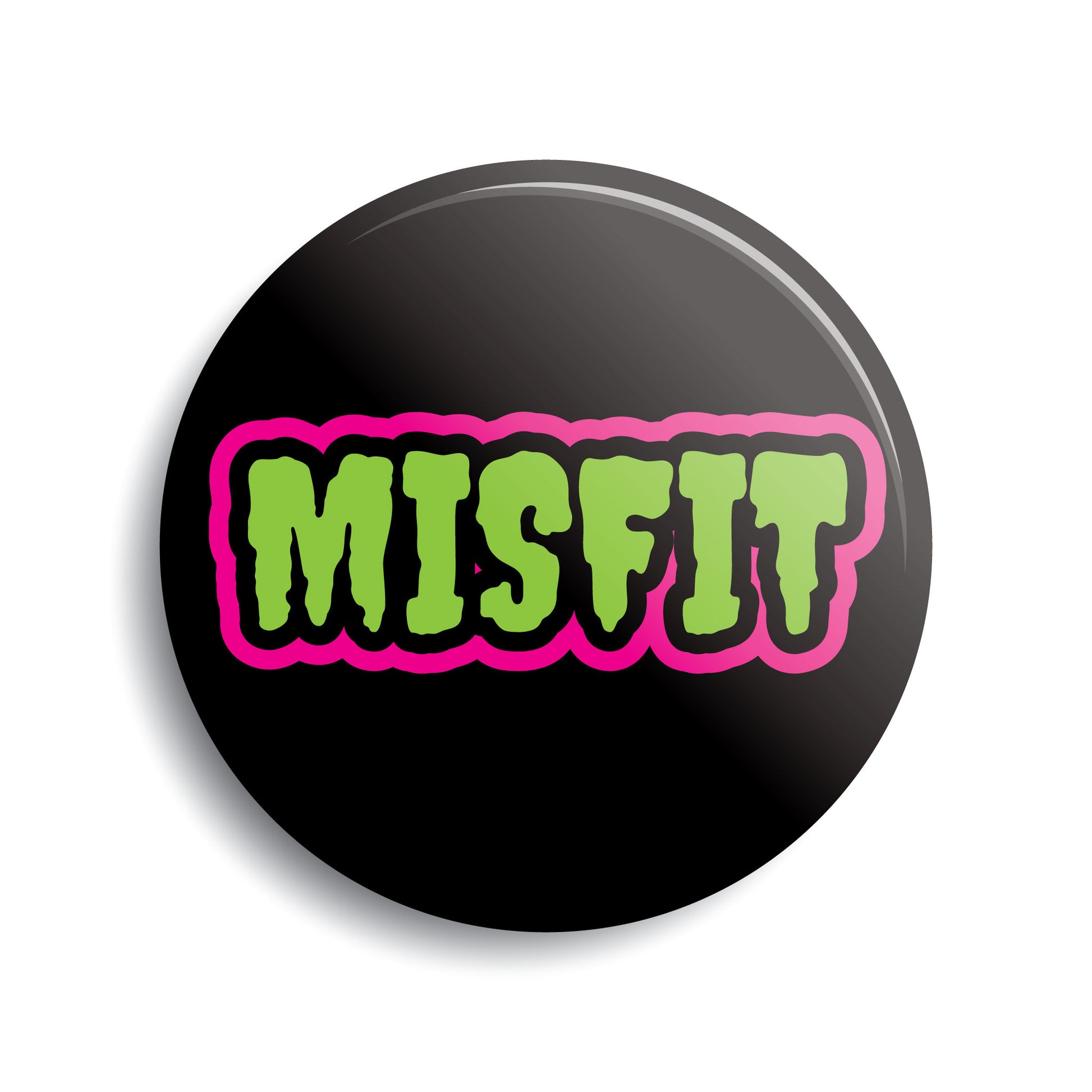"Misfit" pin-back button.