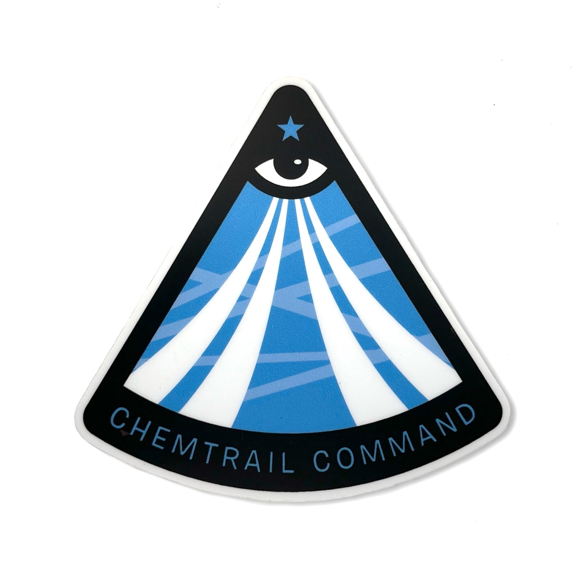 Chemtrail Command military conspiracy theory shield/badge sticker.