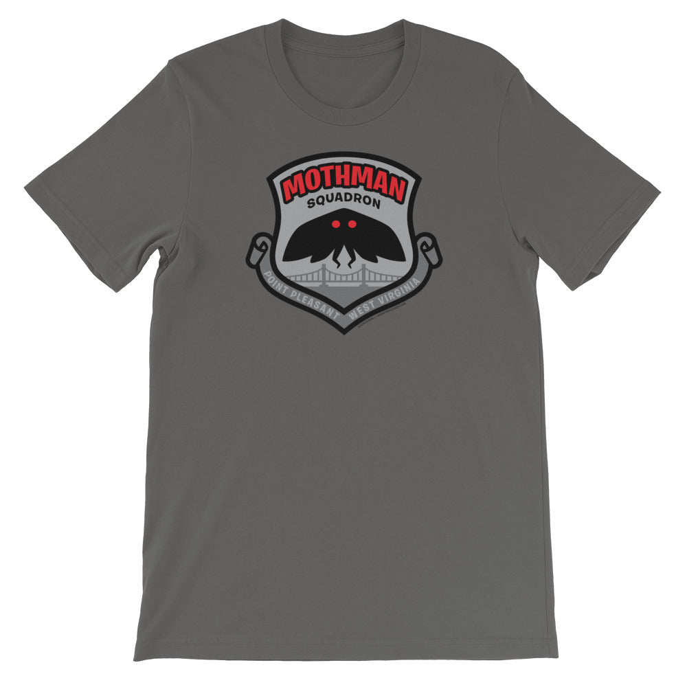 Mothman Squadron military emblem/insignia/shield design on a unisex short-sleeve t-shirt.